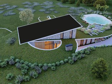 27000 m²’lik bir arsa üzerinde, denize paralel, hafif eğimli, korumalı peyzajından oluşan yeşil çatı ile bütün bir villa projesidir. Şekli ve kabuğu içinde tamamen organik olan bir mimari planlama yapılmıştır.