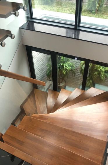 İç mekanda yine cephedeki ahşabın sıcak etkisi devam ettirilerek baffle tavan uygulaması yapılmıştır. Çelik omurgadan oluşan ahşap merdiven tasarlanmıştır. Peyzajında ise doğal taşlar ile yeşilliğin bütünlüğü sağlanmıştır.